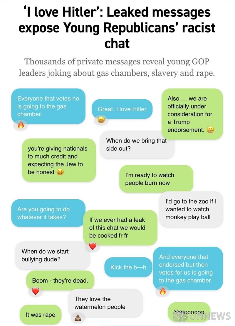 😂미국:'나는 히틀러를 사랑해': 유출된 메시지, 젊은 공화당원들의 인종차별적 채팅 폭로.