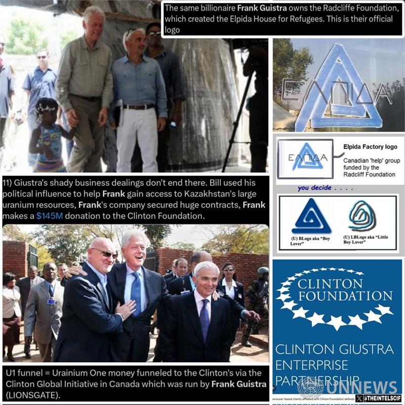 클린턴 가족, 프랭크 지우스트라, 그리고 매우 익숙한 상징.우연은 없다. 단지 패턴과 아동 성착취자들뿐이다. 프랭크 지우스트라는 누구이며, 클린턴과 어떻게 연결되어 있을까? - 프랭크 지우스트라는 광업과 금융계에 연결된 캐나다 사업가다. 그는 또한 라이온스게이트 엔터테인먼트, 즉 "할리우드"의 창립자이기도 하다. - 프랭