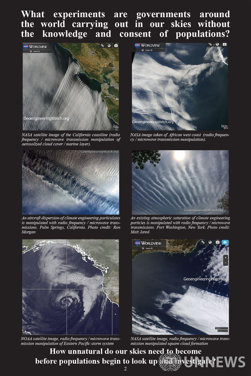 사용되는 구름 핵은 나노 형태의 금속 염으로 구성되며, 우리가 알고 있는 모든 생명체에 잠재적으로 독성이 있습니다. 우리는 알루미늄, 스트론튬, 바륨 및 토양, 빗물, 눈 및 식물의 축적을 정상 상태보다 수천 배 높은 수준으로 문서화했으며 많은 사람들이 전혀 존재하지 않아야합니다.