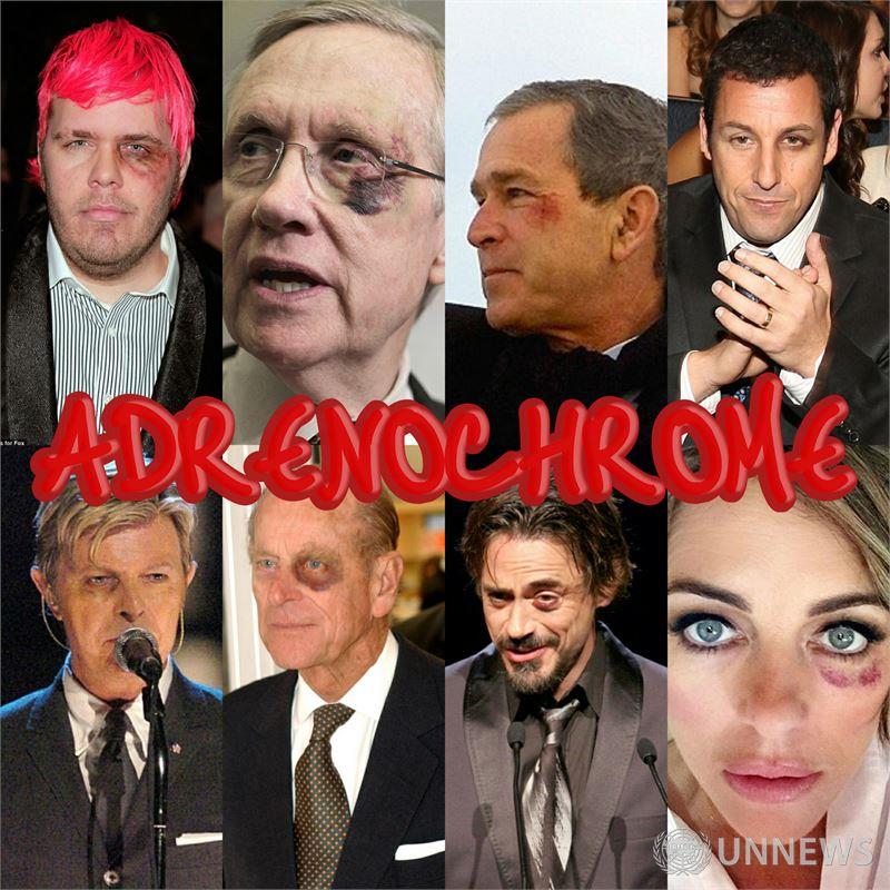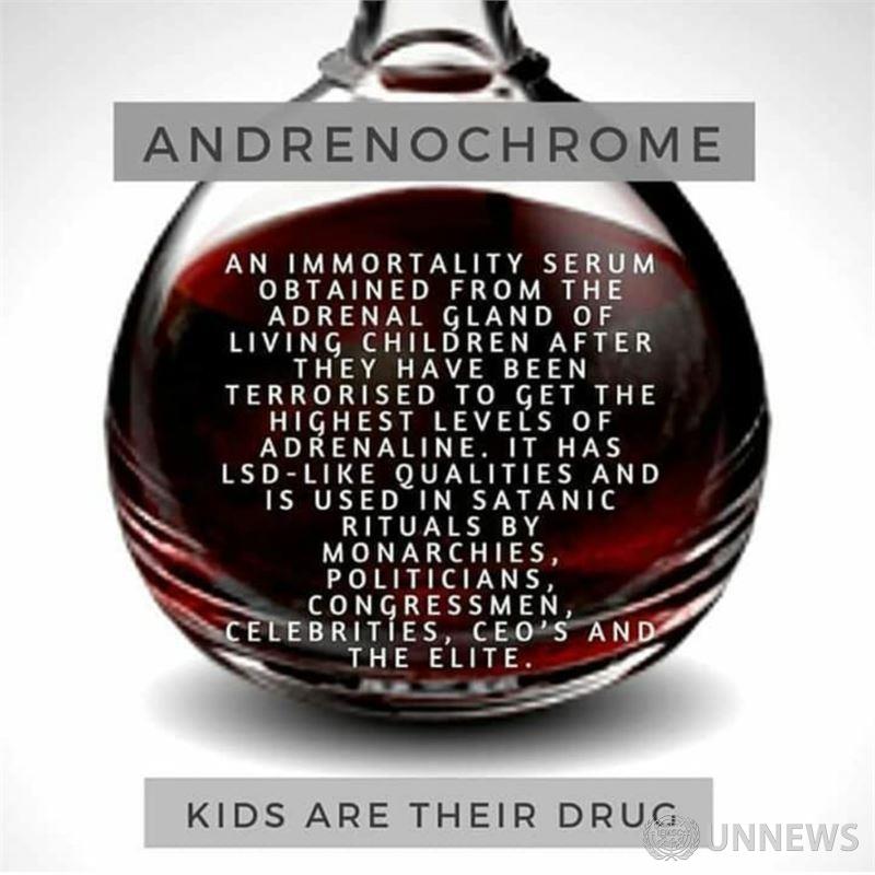 그러므로, 루시퍼의 엘리트들은 (최근 미국 법무부에 의해 밝혀졌던) 소아성문에 묶어두고, 대신 아이들을 납치하고, 강간하고, 고문하여 아드레날린/에피네프린을 땀샘에 집중시킨 다음, 피험자가 살아 있는 동안 땀샘에서 아드레노크롬을 채취하고(아드레노크롬은 사후 검시에서 오래 지속되지 않는다) 약물을 추출한 후 아이를 희생시킨다.