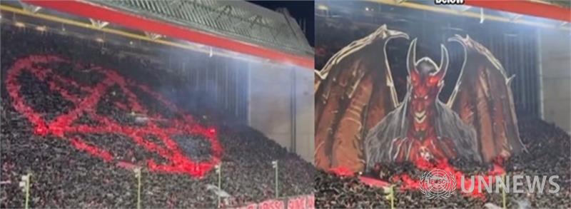 독일 축구 경기 중 하나가 사탄의 의식으로 변했고, 팬들은 한목소리로 구호를 외치며 루시퍼를 소환하는 거대한 오각성을 만들어냈습니다.