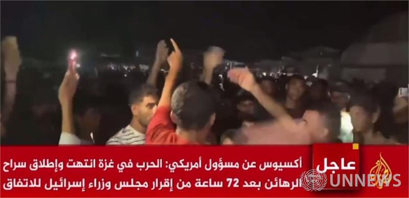 협상이 가자지구에 전해지자 칸유니스에서 축하가 폭발하다