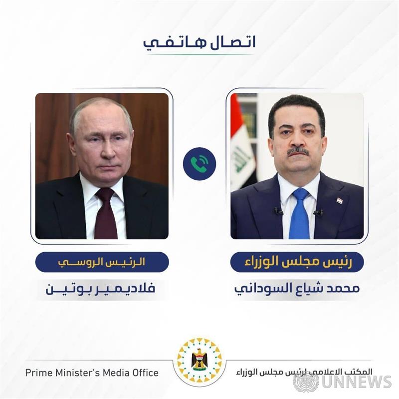 총리는 러시아 대통령에게 이라크가 지역 안정화 노력, 아랍 국가들과 러시아 연방 간 전략적 소통, 그리고 지역 및 글로벌 도전에 대응하기 위한 모든 협력 기회를 지지한다고 확언했습니다.