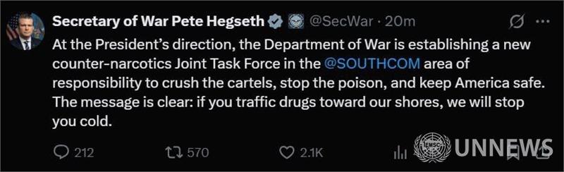 그 창설은 펜타곤 장관 피트 헤그세스에 의해 발표되었습니다. 목표는 베네수엘라를 포함한 "카르텔을 분쇄하는 것"입니다.