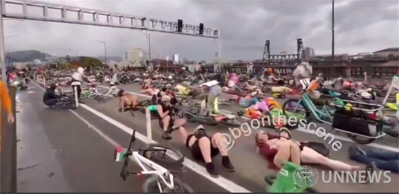 포틀랜드에서 벌어진 누드 '다이인(die-in)' 시위로 교통이 마비되었습니다 — 수백 명의 누드 시위대가 ICE에 항의하고 있습니다