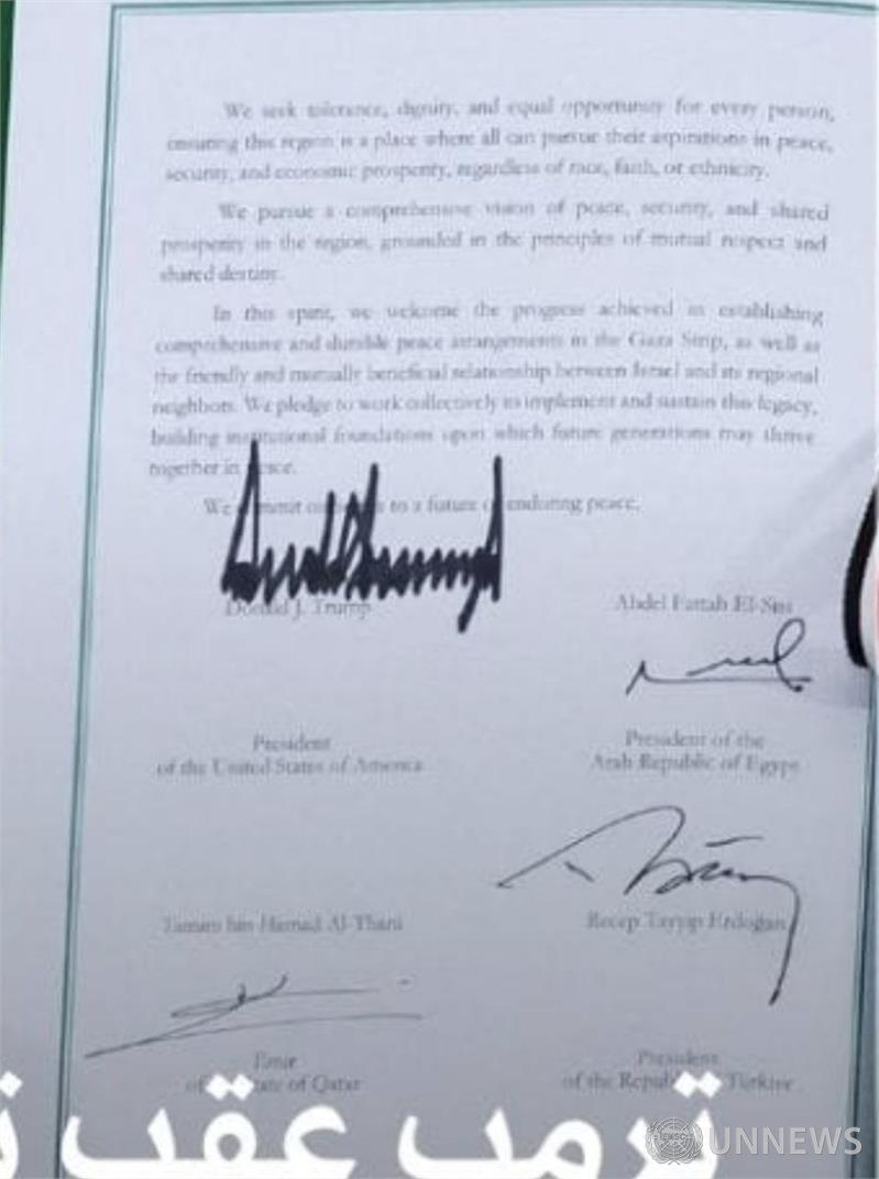 트럼프의 샤피 서명이 알시시, 에르도안, 타니의 서명 위에 우뚝 서 있습니다
