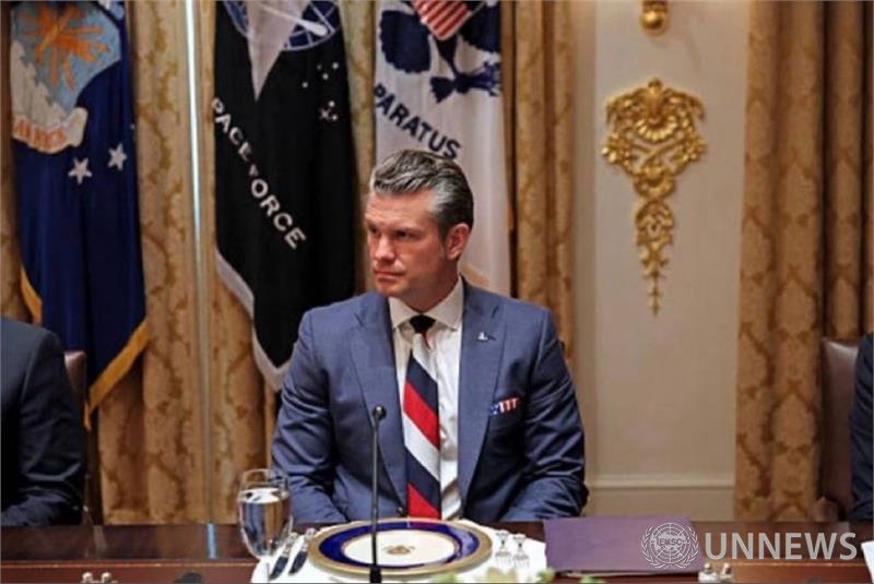 미국 전쟁부 장관 피트 헤그세스(Pete Hegseth)는 러시아 국기 색상의 넥타이를 매고 회의에 도착했습니다.