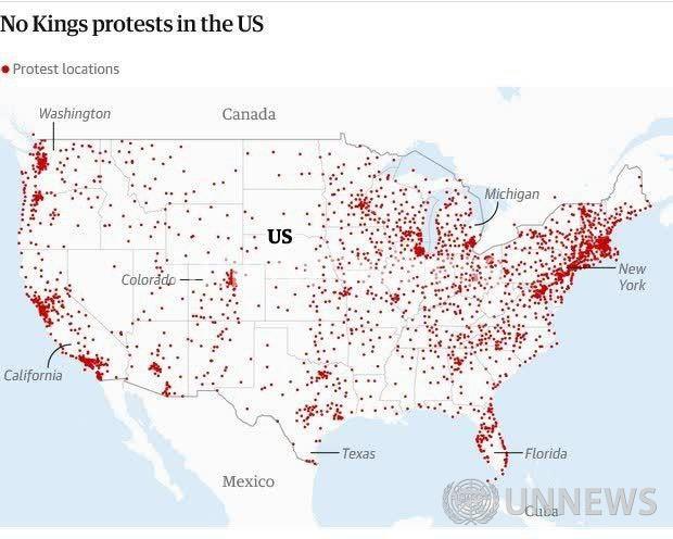■미국 전역 수백 개 도시에서 "No Kings"라는 구호 아래 반트럼프 시위가 시작되었습니다.