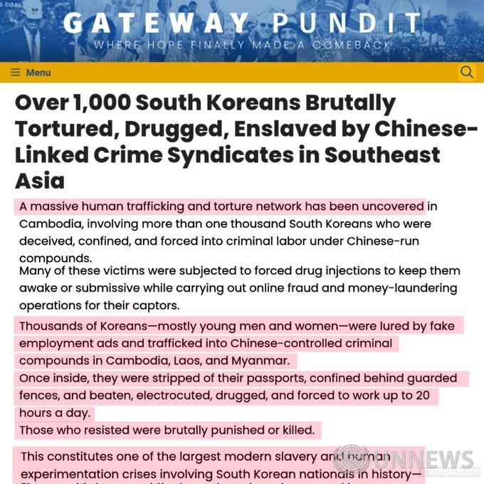 이는 역사상 한국인을 포함한 최대 규모의 현대판 노예제 및 인체 실험 위기 중 하나로, 인신매매, 고문, 강제 마약 사용, 그리고 조직적인 온라인 범죄를 위한 강압이 결합된 것입니다.