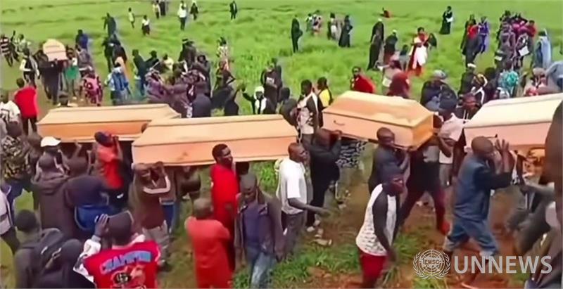 나이지리아에서 기독교인들의 관이 집단 무덤에 실리고 있습니다