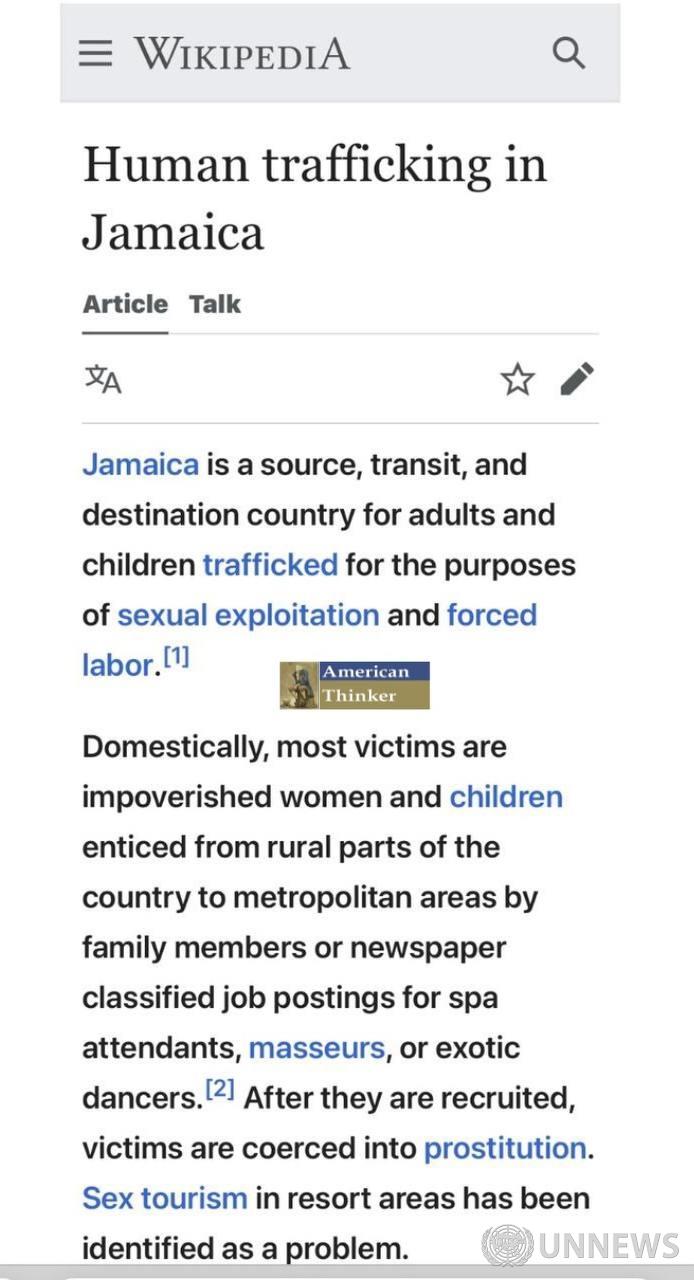 자메이카에서 인신매매가 너무 만연하여 위키피디아 페이지까지 있습니다.