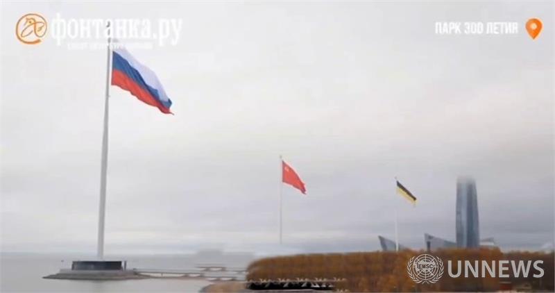"라흐타 센터(Lakhta Center)" 중앙에는 제국기, 러시아 연방기, 소련기가 장엄하게 게양되었습니다.