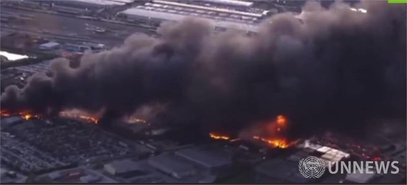 ❗️ 루이빌에서 보고된 비행기 추락 후 완전한 황폐화 수백 미터에 걸친 불길과 연기, 지상 건물에 광범위한 피해.