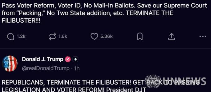 공화당원들이여, 필리버스터를 종식시키세요! 법안 통과와 유권자 개혁으로 돌아가세요! 대통령 DJT