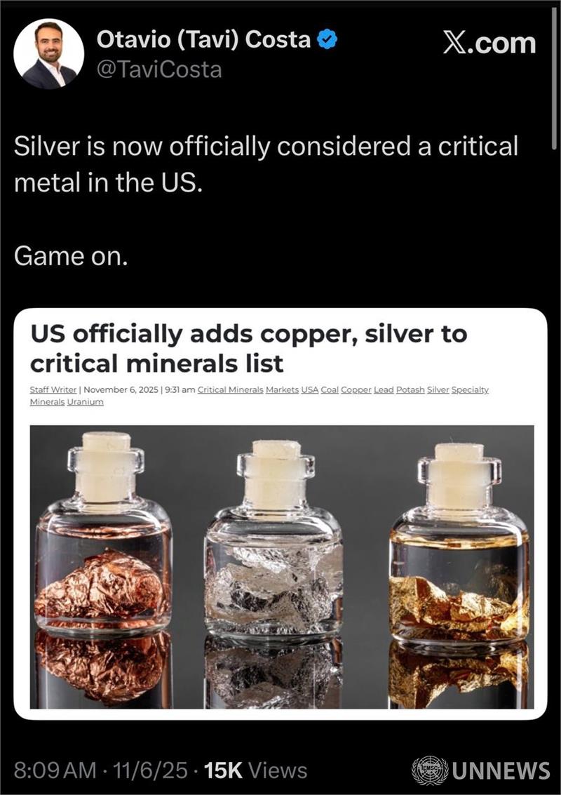 은이 이제 미국에서 공식적으로 중요 금속으로 간주됩니다.