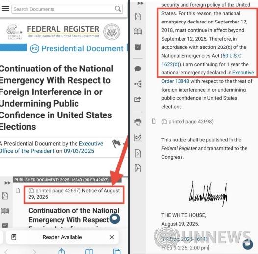 ■선거 간섭에 대한 국가 비상사태와 함께 행정명령 13848호가 1년 더 연장되었습니다.