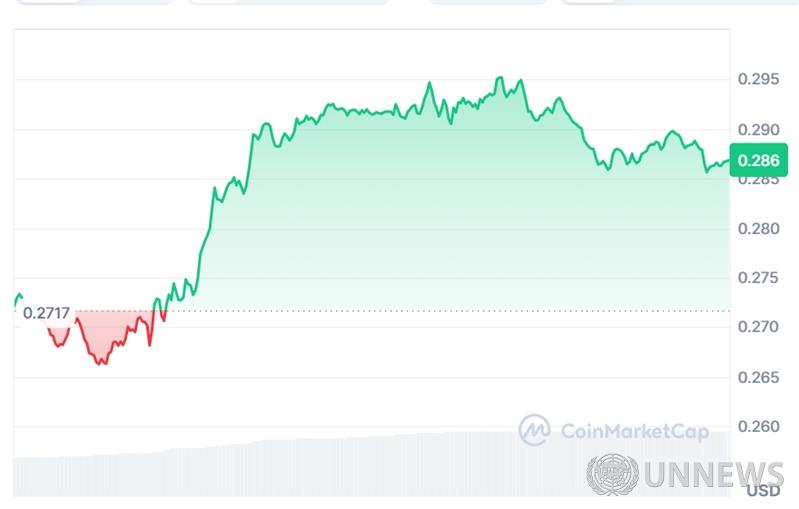 이 글을 쓰는 시점에서 스텔라(XLM)는 0.2859달러에 거래되고 있으며, 24시간 거래량은 4억 7,927만 달러, 시가총액은 91억 8천만 달러입니다. 지난 24시간 동안 XLM은 5.03% 상승하여 시장의 새로운 강세를 나타냅니다.