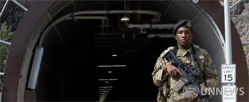 샤이엔 마운틴의 터널 곳곳에서 21 보안대대의 수비대원들이 국가에서 가장 안전하고 상징적인 시설 중 하나를 지키고 있습니다.