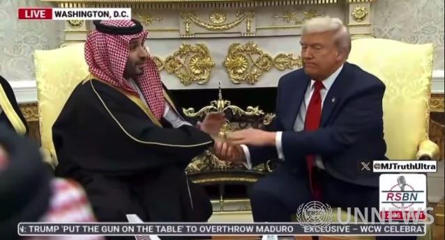 트럼프 대통령이 말하길 “우리는 오랜 기간 정말 좋은 친구였다.” 손을 주목하세요. 왕자도 트럼프와 똑같이 합니다. (주파수를 의미+우주군)아래 화살표 🙌🏻💥🇺🇸 🇸🇦 계획 같네요 😏