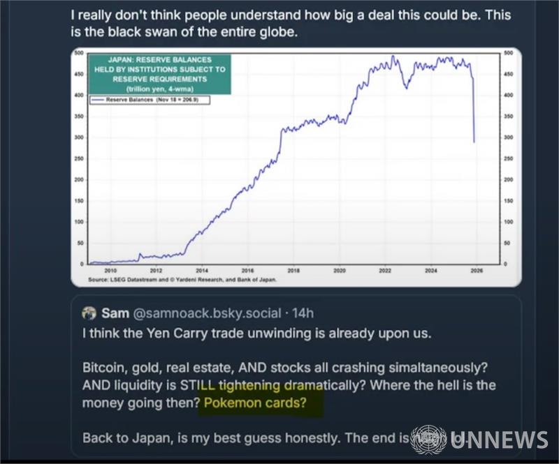 지구상의 모든 주요 은행, 헤지 펀드 및 금융 기관은 30 년 동안 저금리로 엔을 빌려 다른 투자로 돌려 왔습니다. 이 '캐리 트레이드'의 가치는 3,500억 달러에서 4조 달러에 이를 수 있다. 파생 상품 거래에 숨어 있기 때문에 실제 금액은 누구에게도 알 수 없습니다.