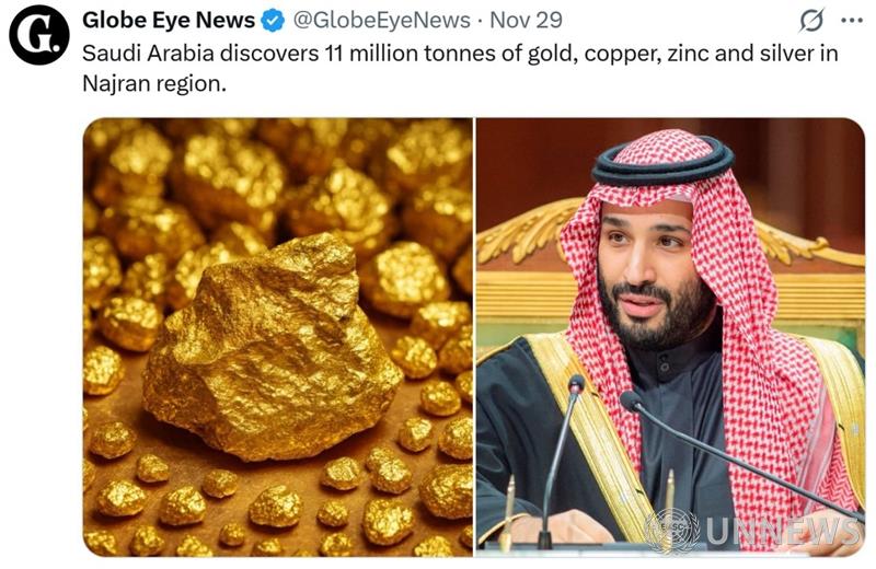 이란, 호라산 주 동부에서 6100만 톤 이상의 금 광석을 포함한 대규모 금 광산을 발견했습니다. ✨ 🇸🇦 사우디아라비아, 나주란 주에서 1100만 톤의 금, 구리, 아연, 은을 발견했습니다. ✨ 🇮🇹 이탈리아는 유럽중앙은행에 300억 달러의 금 준비의 관리권을 요구하고 있다. 출처:X 0 0 UNnews 유엔뉴스 유엔신문 유엔뉴스 satiny777@naver.com 유엔뉴스의 기사 더보기 저작권자 ⓒ 유엔뉴스, 전재 및 재배포가 가능합니다.