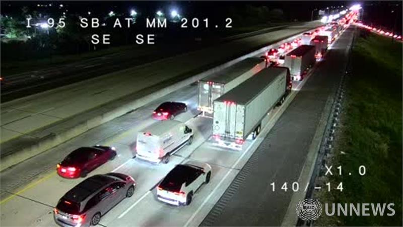 현재 FHP는 차량 신고만 하고 있습니다. 도로 차단 장치 동반 차량 사고 BREVARDI-95 SB [MM201] x[MM201] [코코아]도로 차단 - 주의
