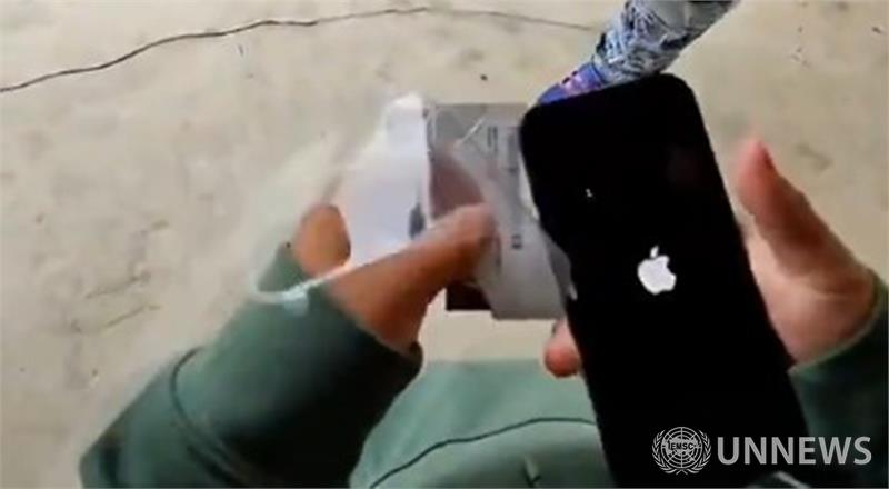 미국에서 도난당한 아이폰을 흑인 남자가 중국 남자에게 팔고 있다.