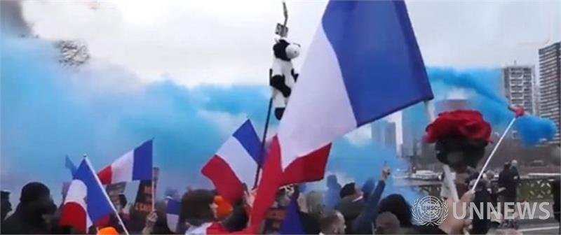 파리 시내를 행진하는 시위대가 들고 있던 플래카드에는 프랑스 지도부에 대한 단호한 메시지가 적혀 있었습니다.