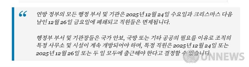 2025년 12월 24일과 2025년 12월 26일에 연방 정부의 행정부 부서 및기관 폐쇄를 규정합니다.