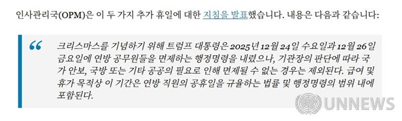 트럼프 대통령은 연방 공무원들에게 두 번의 추가 유급 크리스마스 휴가를 부여하는 행정명령을 내렸습니다.