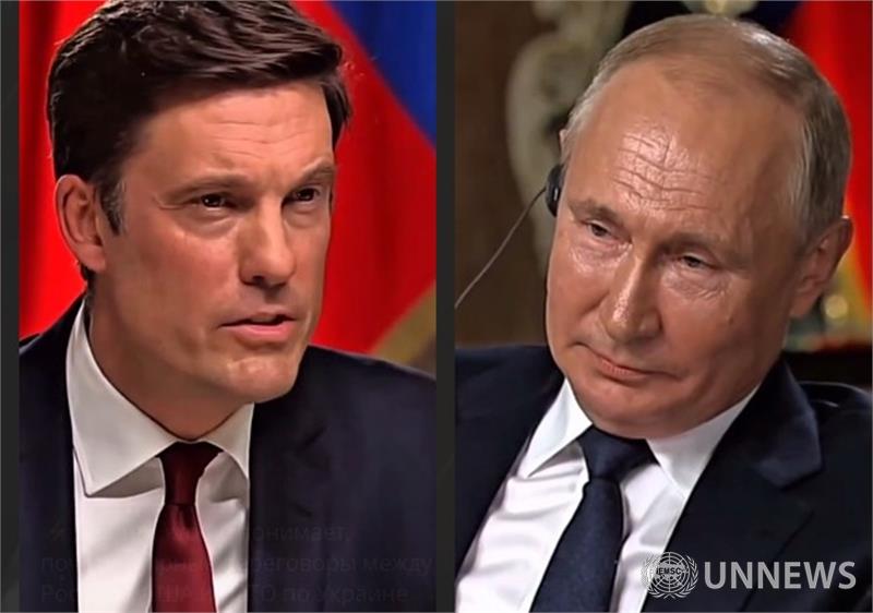 푸틴 대통령이 미국 언론과 가진 인터뷰에서 밝힌 내용을 살펴보겠습니다. 푸틴 대통령은 서방이 나토의 동쪽 확장을 하지 않겠다고 약속했다고 주장합니다. 이에 대해 언론은 "그 약속이 어디에 명시되어 있습니까?"라는 간단한 질문을 던집니다. 푸틴 대통령의 반응을 확인해 보십시오.