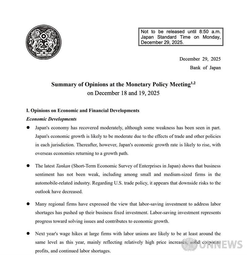2025년 12월 18일과 19일에 개최된 제1차, 제2차 통화정책회의 의견 요약