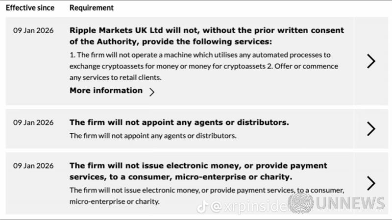 리플은 암호화폐 ATM을 운영할 수 없으며, FCA의 사전 승인 없이 소매 고객에게 서비스를 제공하거나, 대리인 또는 유통업체를 지정하거나, 소비자, 소규모 기업 또는 자선 단체에 전자 화폐를 발행할 수 없습니다.
