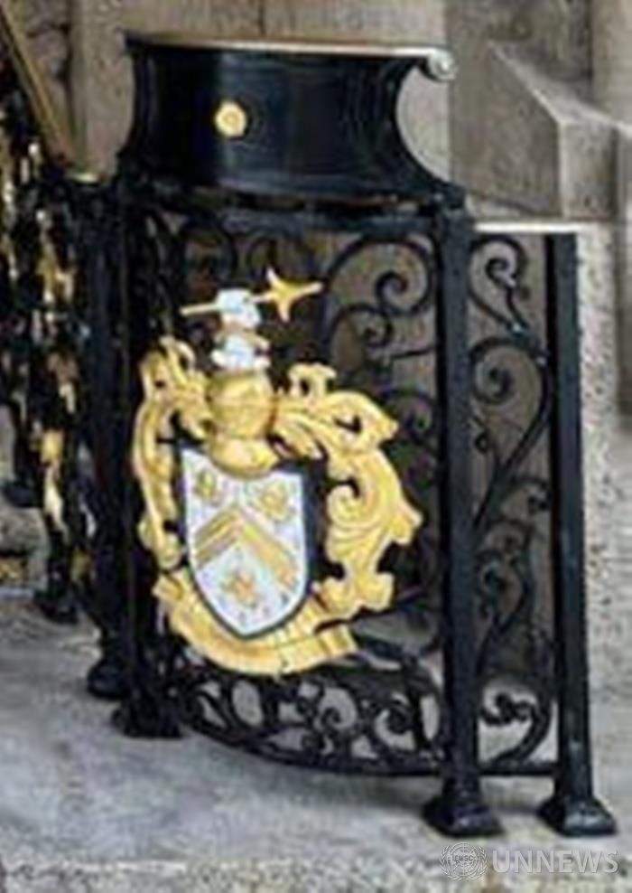 이 화려한 난간 장식에는 1939년 영국 문장원(British College of Arms)에서 조셉 에드워드 데이비스에게 수여한 문장이 새겨져 있습니다. 그는 웨일스계 미국 외교관이자 1920년대에 마라라고를 지은 마조리 메리웨더 포스트의 세 번째 남편이었습니다.
