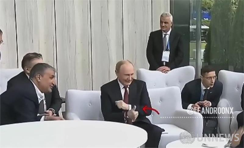 러시아 대통령 블라디미르 푸틴은 1975년부터 1991년까지 KGB 요원으로 복무했다.여러 국가원수들과 대화하는 가운데 그는 경호원에게 암호로 신호를 보내고 있습니다. 그는 얼굴표정과 몸짓에 대한 뛰어난 통제력을 가