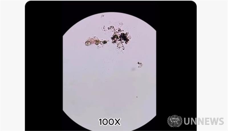 고출력 현미경으로 수집하고 조사한 빗물은 같은 결과를 반복해서 보여줍니다.