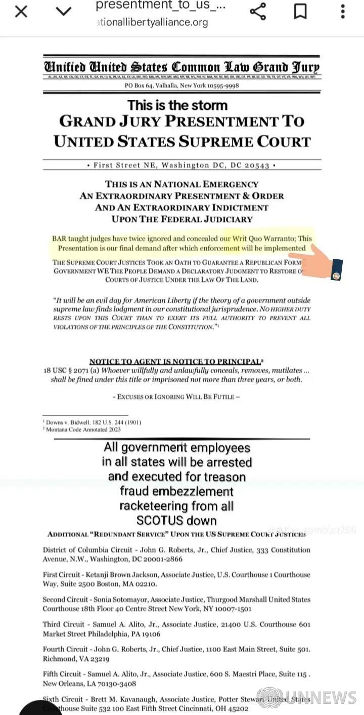 이것은 국가 비상사태이며, 연방 사법부에 대한 특별 제출 및 명령이자 특별 기소입니다