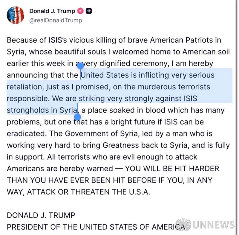 ■트럼프: ‘미국은 매우 심각한 보복을 하고 있습니다…우리는 시리아의 ISIS 거점을 매우 강력하게 공격하고 있습니다’